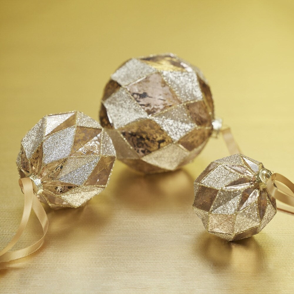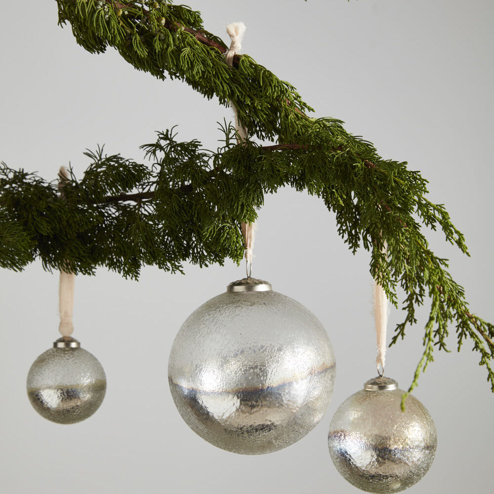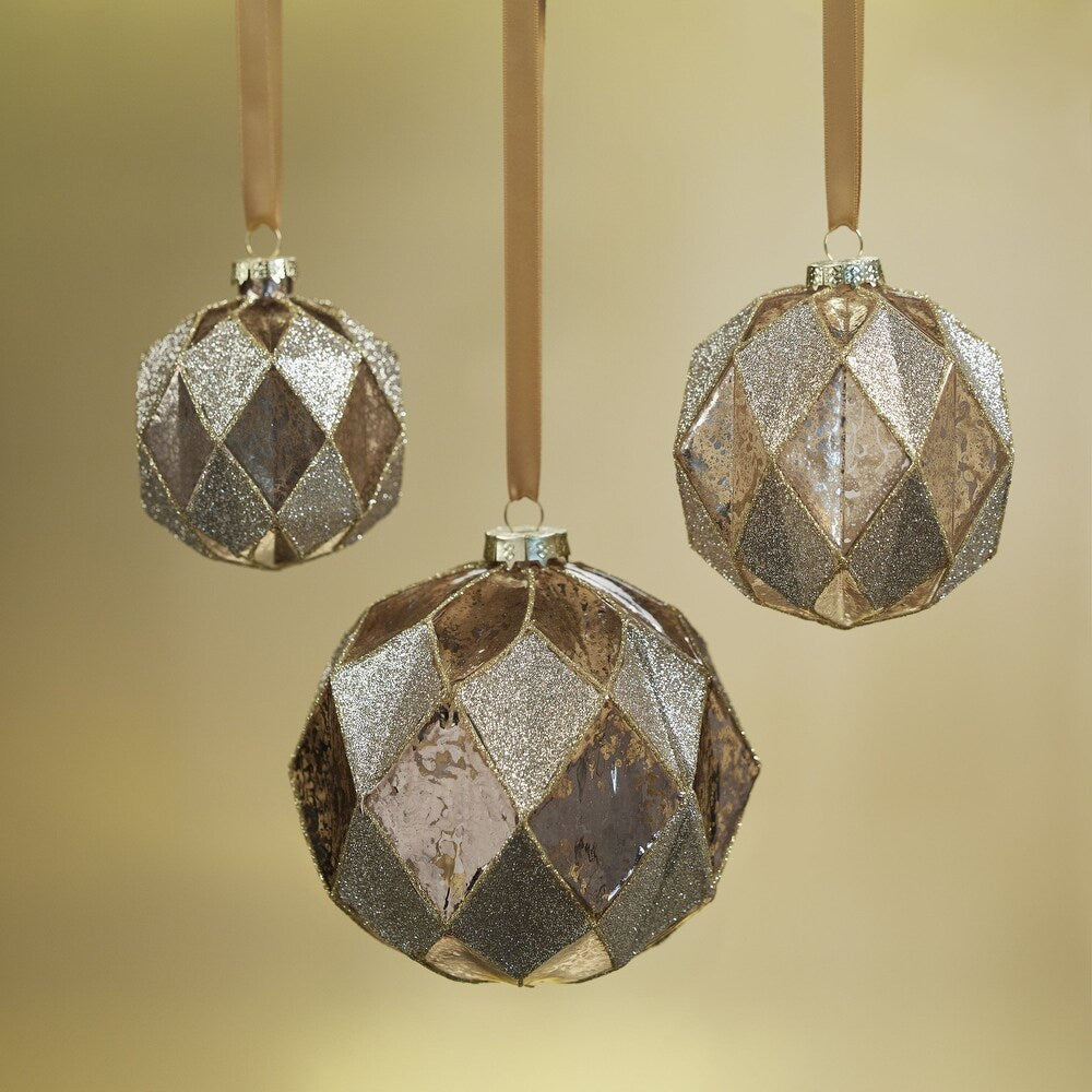 4" Mercury Glass Glitter Stripe Ornaments