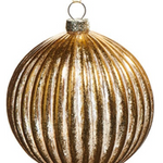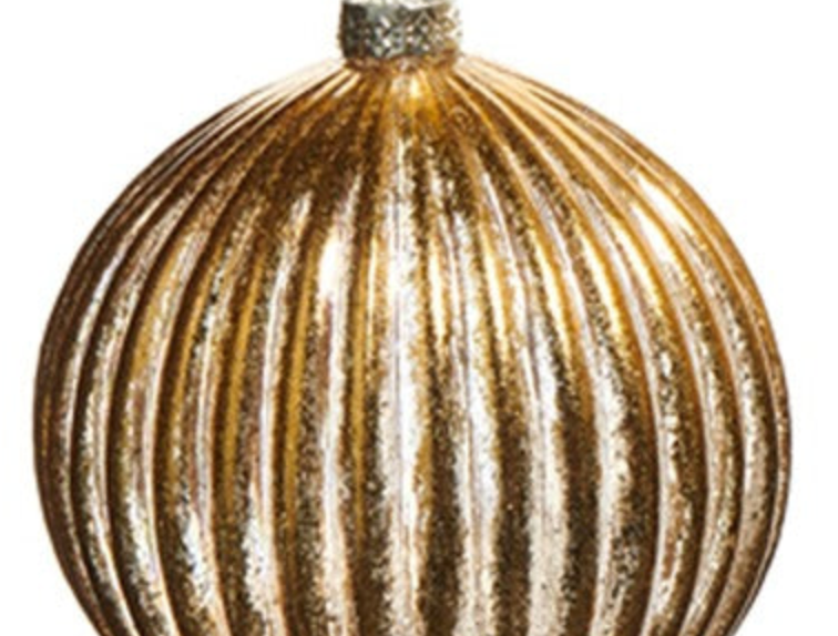 4" Gold Ribbed Glass Ornament