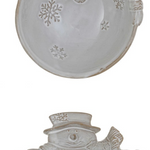 Bring a playful touch to your holiday table with this charming stoneware bowl shaped like Santa or a snowman. Finished with a snowflake design and an antique white reactive glaze, each bowl has its own unique character. Perfect for serving candy, snacks, or small holiday treats, this festive piece adds warmth and whimsy to your seasonal décor.