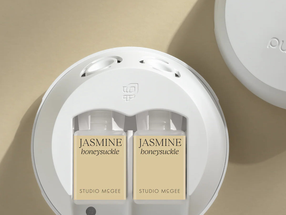 Bring the serenity of a blooming garden into your home with the Studio McGee Jasmine Honeysuckle Pura Refill. This delicate, calming fragrance blends bright citrus with soft floral notes for an inviting, timeless aroma.