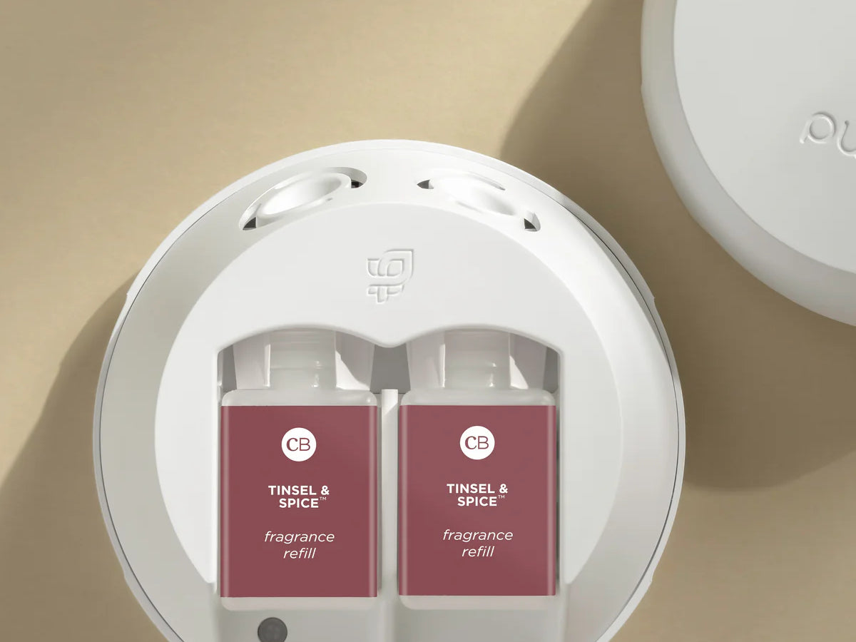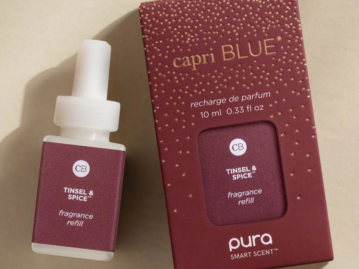 Bring festive warmth and joy to your space with the Capri Blue Tinsel & Spice Pura Scent, a perfectly balanced fragrance that blends citrus, spice, and a hint of woods to elevate your holiday spirit.