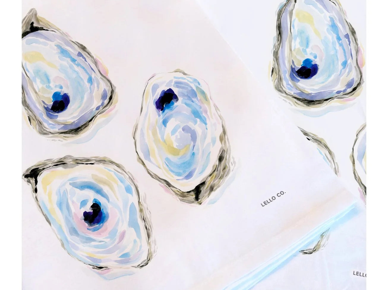 Elevate your kitchen with the coastal charm of the Lello Co. Oyster Dish Towel. Featuring an original watercolor oyster illustration, this hand-printed flour sack towel captures the serene beauty of Florida’s shores in soft blues, greens, and natural tones. Made from 100% premium cotton, it offers exceptional absorbency and durability—perfect for everyday use or for adding an artful touch to your home.