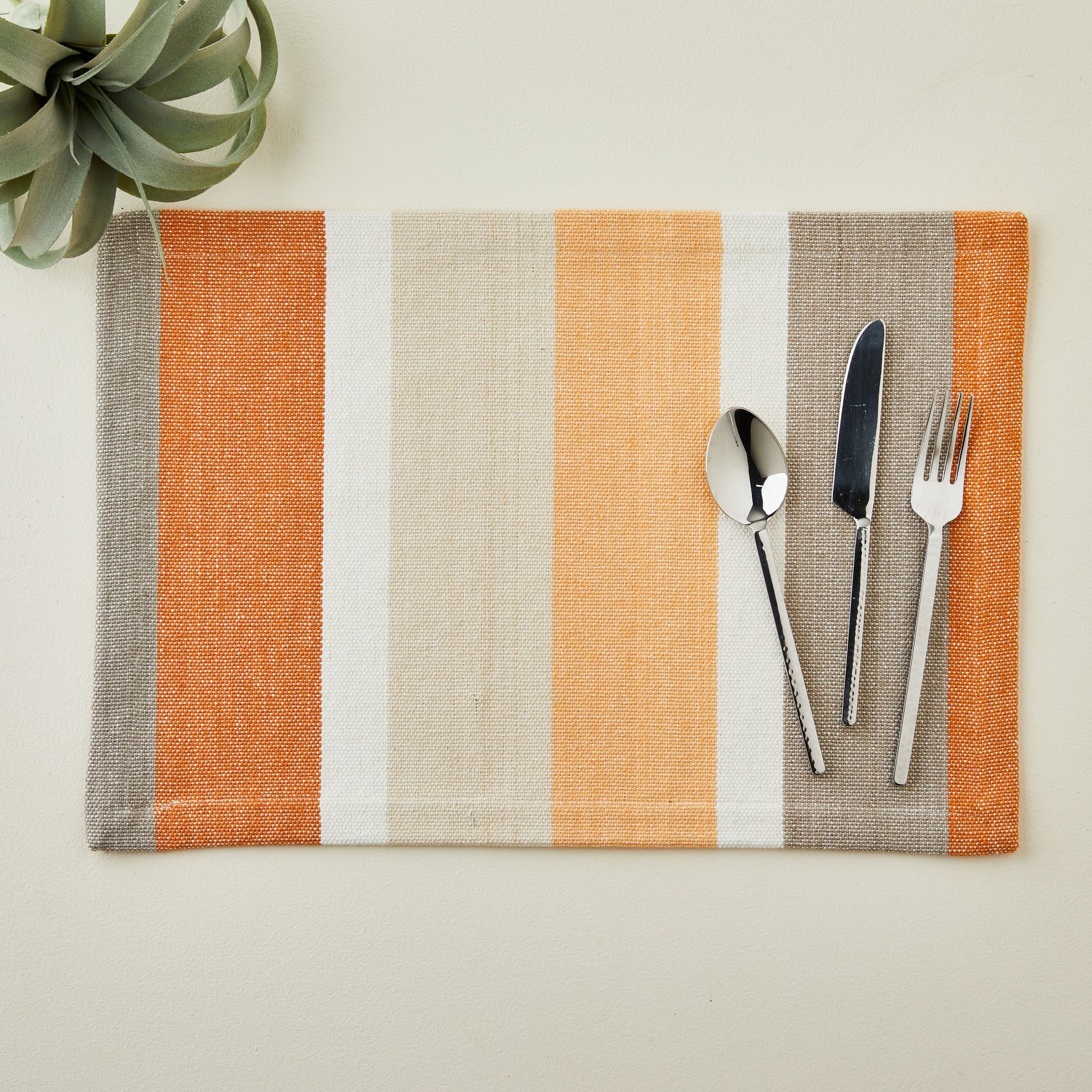 Add warmth and rustic charm to your table with the Chelsey Canyon Placemat. Part of our Southwest Collection, this 100% cotton placemat features a Tableau-exclusive design of soft orange, tan, white, and gray stripes—perfect for creating a cozy, welcoming atmosphere in any dining space.
