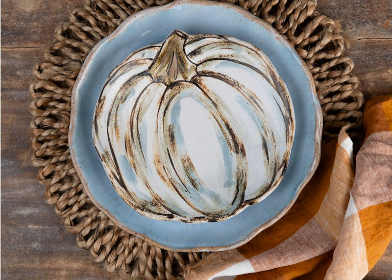 A must-have for collectors and hosts alike, this pumpkin plate brings artisanal charm to any fall tablescape.