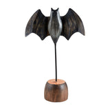 This decorative Halloween sitter is crafted from high-quality tin for a vintage-inspired look and is supported by a solid mango wood base that adds stability and warmth. The natural grain and tones of the mango wood contrast beautifully with the metallic finish of the bat, creating a unique blend of rustic and whimsical design.