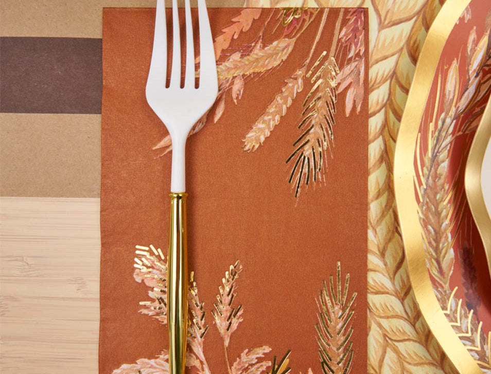 With their shimmering gold details and versatile design, these napkins bring warmth, charm, and refinement to any autumn gathering—perfect for entertaining guests or adding a seasonal touch to everyday spaces.
