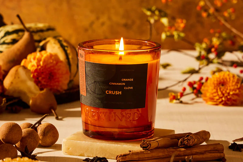 Indulge in the bountiful harvest with Rewined Crush Candle. This unique blend of vibrant burnt orange, woody cinnamon, and sultry clove brings a warm, decadent aroma that rewards the patience and dedication of your heart. Elevate your space with the citrusy and spicy notes of Crush.
