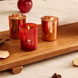 Create a warm and inviting ambiance with the Simmered Cider Votive Candle. This 2-ounce candle features a cozy blend of fresh apples, aromatic cardamom, and subtle hints of bourbon, filling any space with comforting holiday scents. Housed in an elegant rose gold container, it adds a touch of sophistication while doubling as a reusable vessel for small trinkets once the candle is finished.