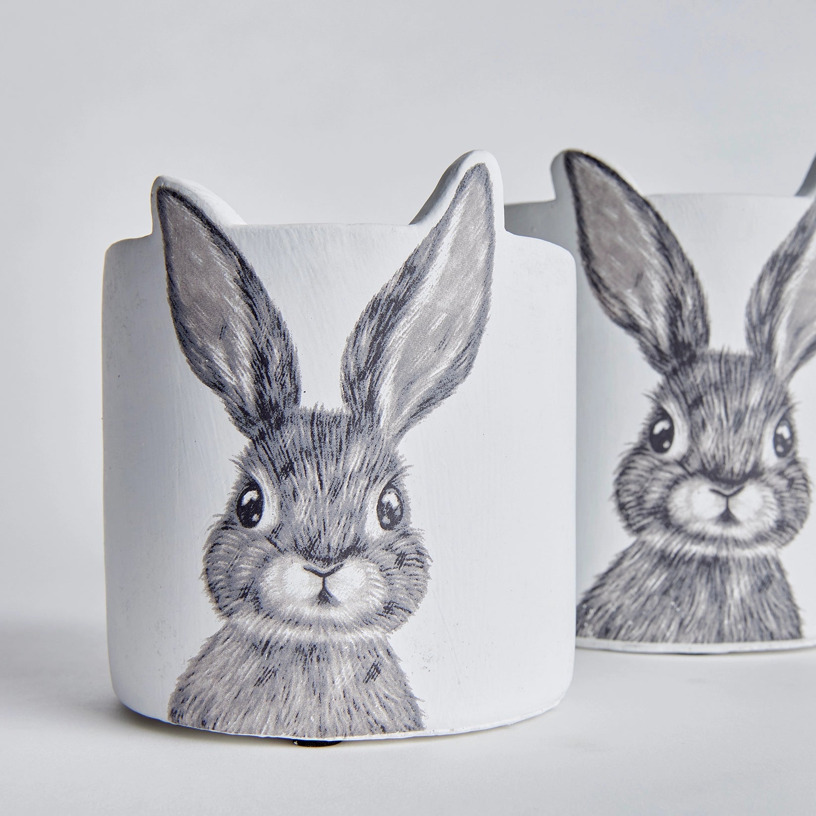 Look at those sweet faces! These illustrated rabbit planters are almost too cute to handle—especially with their darling ears popping up above the rim for an extra playful touch. Perfect for showcasing a lush green plant or fresh-cut garden blooms, they make an adorable centerpiece for spring and beyond.