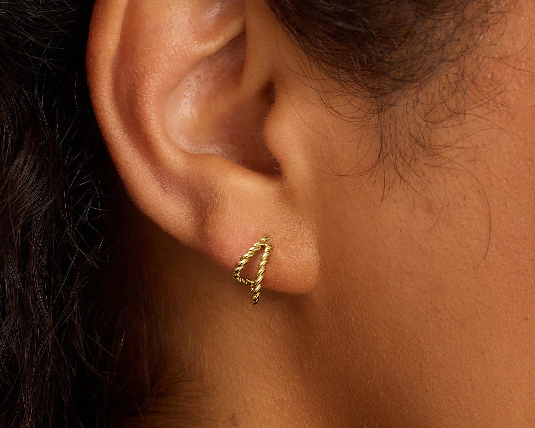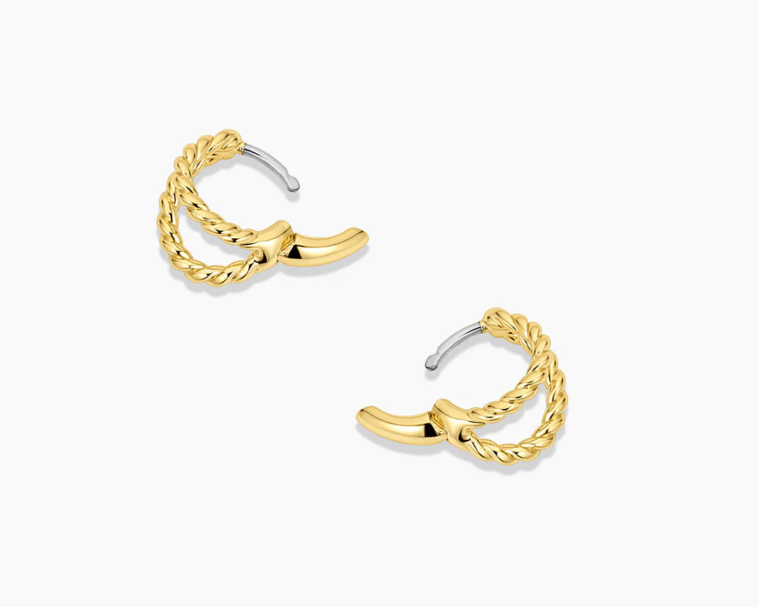 The Gorjana Crew Split Huggies add a playful, modern twist to any ear stack. Featuring a distinctive split design, these gold huggie earrings create the illusion of multiple earrings in one stylish piece, making them perfect for layering or wearing solo for subtle statement style.