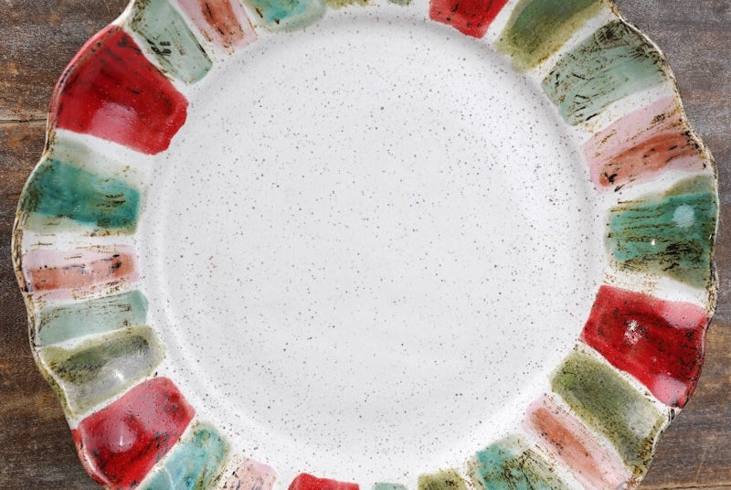 Celebrate the season in timeless Southern style with the Etta B Candy Stripe Buffet Platter. Handcrafted and hand-painted in Mississippi, this festive ceramic platter showcases cheerful red and green candy stripes that capture the spirit of a classic Christmas. Measuring 12", it’s perfectly sized for serving holiday mains, cookies, or appetizers—making it a beautiful and functional centerpiece for your holiday gatherings.