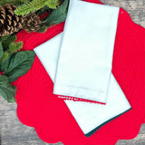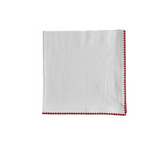Add a playful and festive touch to your holiday table with these Red Edged Napkins. Made from 100% cotton, each 20" napkin features colorful embroidered edges on one side, creating a charming accent that complements classic Christmas décor.