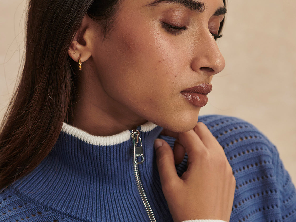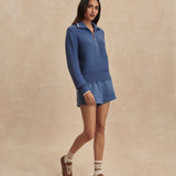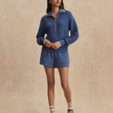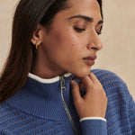 Designed with a modern half-zip silhouette, the Morwenna offers versatile styling whether you're heading to morning coffee, traveling, or transitioning from errands to lounging. The rich Bijou Blue hue adds a refined pop of color while remaining easy to style season after season.