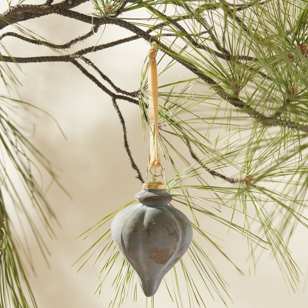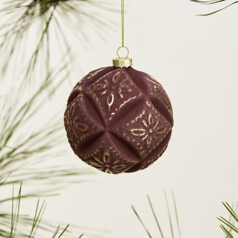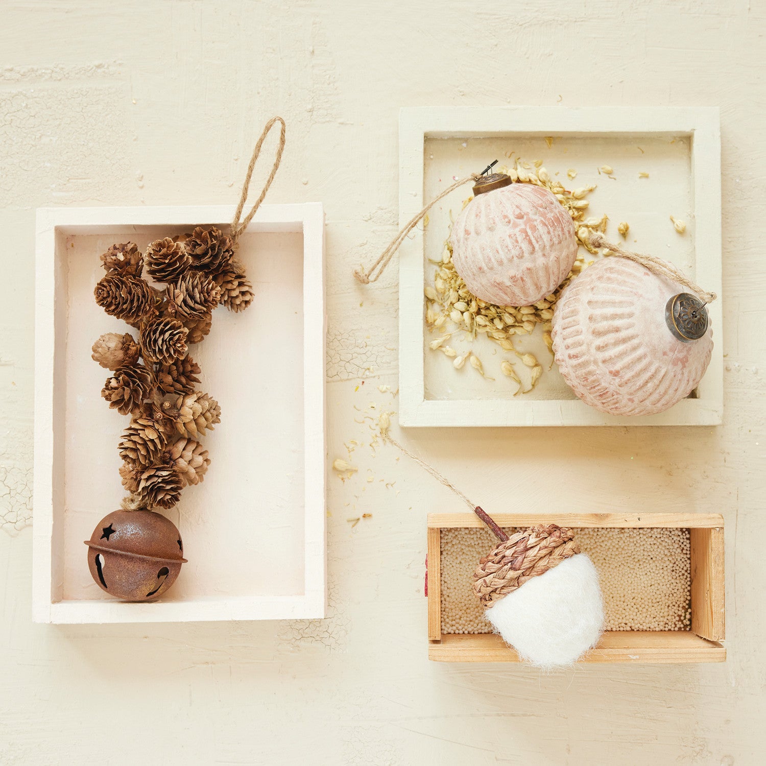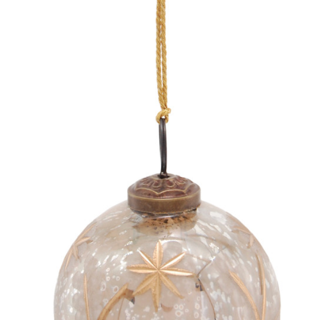 Glass Ball Ornament with Embedded Eucalyptus Leaves