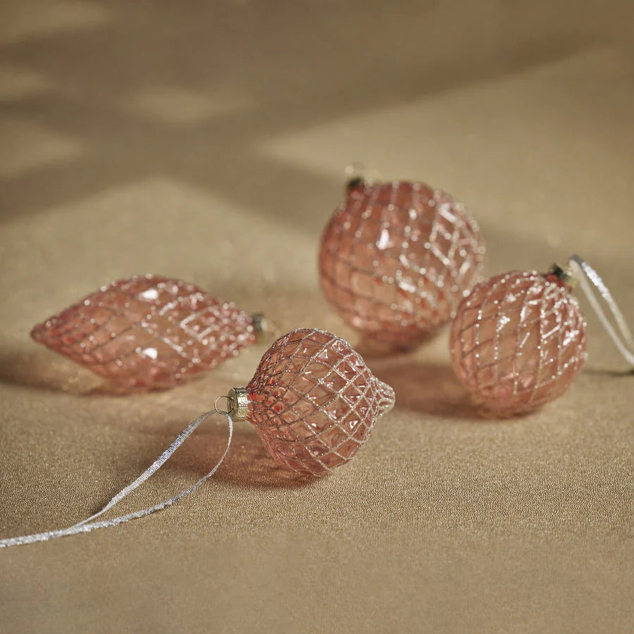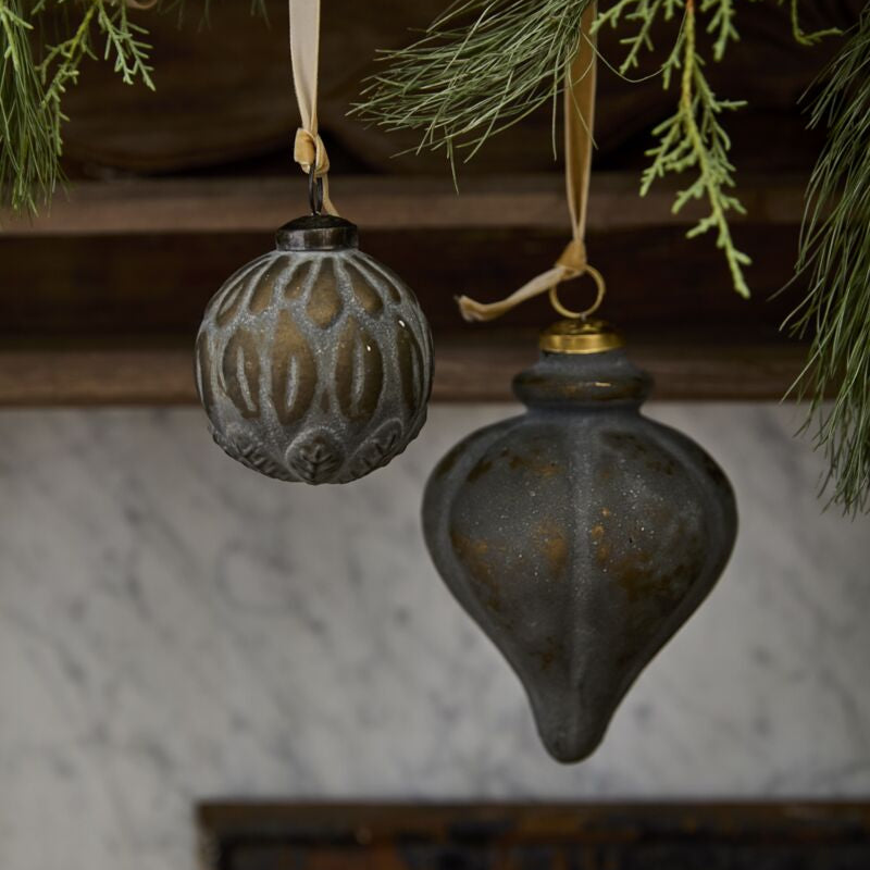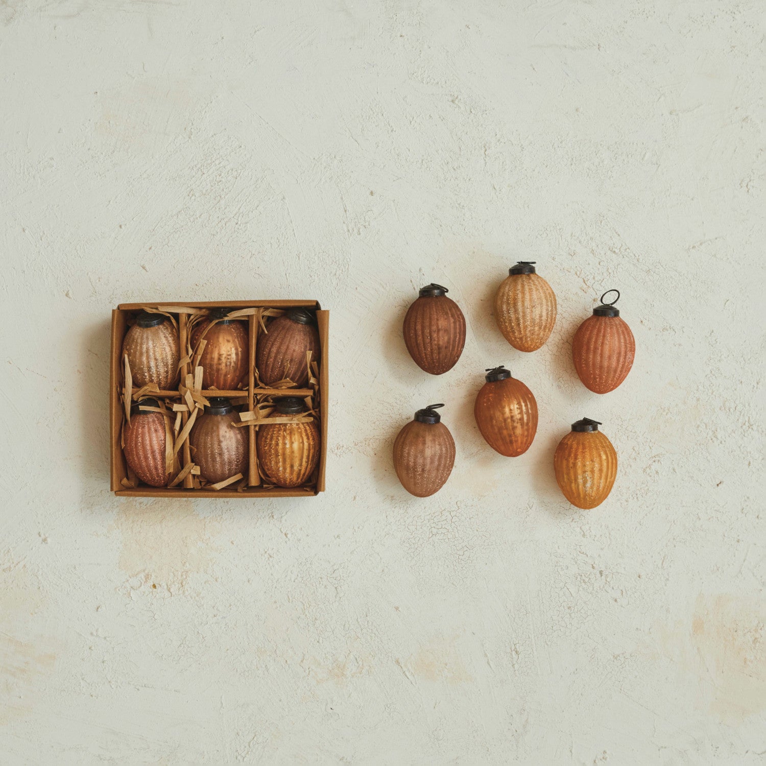 Flocked Glass Ornaments, Blue, Mint & Peach Color