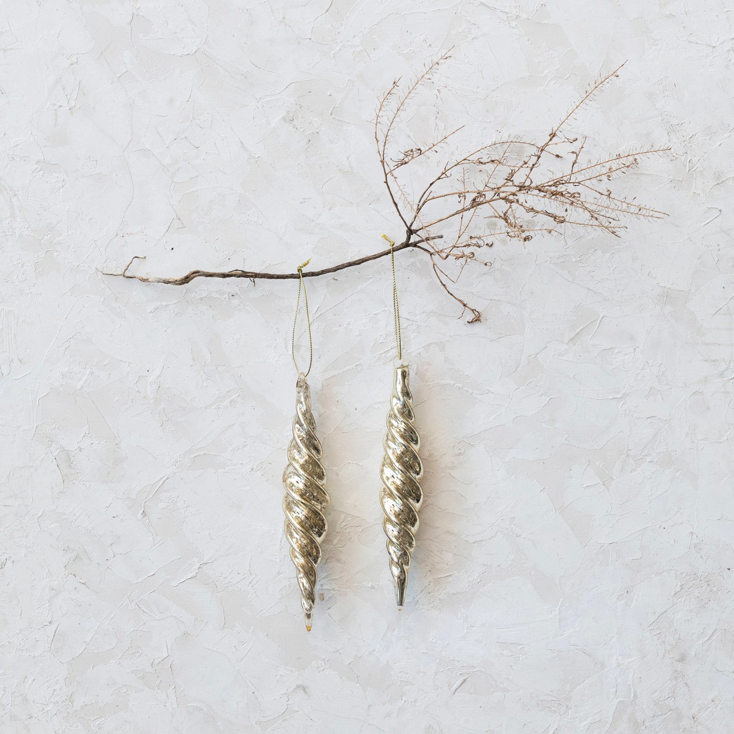 Embossed Mercury Glass Ornament Garland w/ Gold Cord