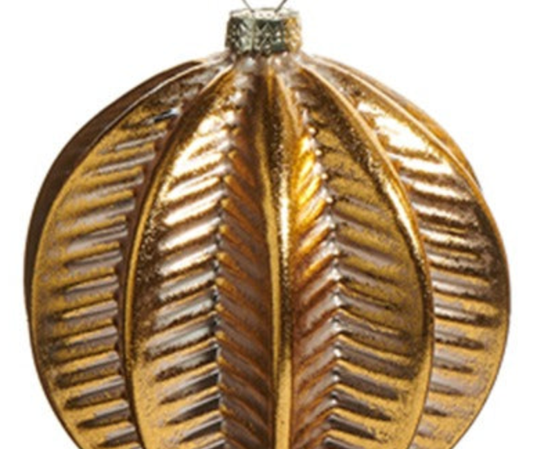 Bring sophisticated shimmer to your holiday décor with these Gold Spine Glass Ornaments, available in two assorted styles and sold individually. Designed with elegant ribbed “spine” detailing and a radiant gold finish, these ornaments add texture, shine, and dimension to Christmas trees, wreaths, and garlands.