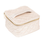 Bring all your favorite accessories for a long weekend—this jewelry case can handle it all. Thoughtfully designed with a soft, structured shape and multiple compartments, it keeps your bracelets, earrings, necklaces, and rings beautifully organized and protected. Inside, you’ll find a roomy main compartment, two attached roll-out clear zip pockets for easy visibility, and a secure strap in the lid to hold rings or delicate pieces in place. The dual-zip closure opens from either side, and the case sits upright for effortless loading and viewing.