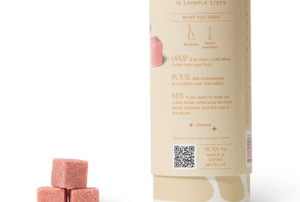 Perfect for brunch, celebrations, or everyday sipping, these LUXE Mixer Cubes dissolve smoothly and allow you to customize your drink—use fewer cubes for a light, refreshing note or add more for a bold, fruit-forward Bellini. Each package creates 15–30 servings with less than a teaspoon of sugar per cube.