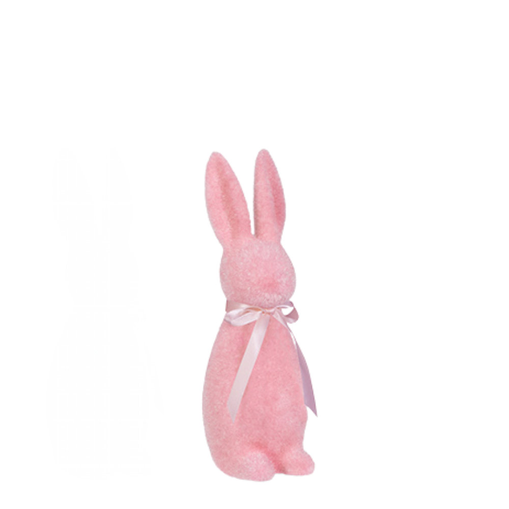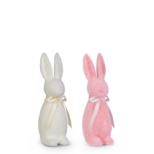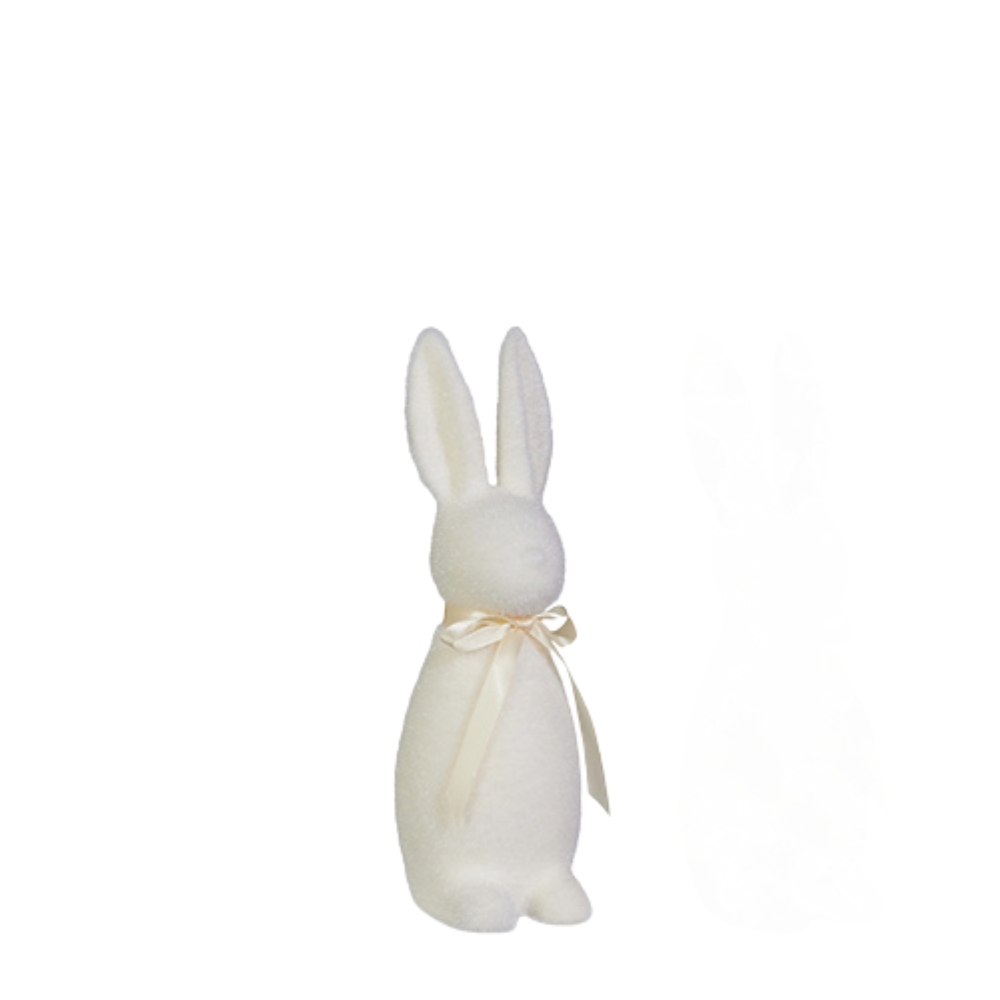 Their soft flocked finish adds texture and personality, creating an eye-catching accent on shelves, tables, mantels, or entryways. Lightweight and durable, these decorative bunnies are a fun and festive way to brighten your space year after year.