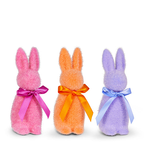 Celebrate spring with our Sherbert Flocked Bunnies, a charming set of 3 assorted multicolor plastic figurines that bring whimsy and warmth to any space. Measuring 5"L x 5.5"W x 16"H and 2"L x 2.75"W x 6"H, these bunnies feature a soft, fuzzy flocked texture for a playful and festive look.