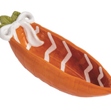 Add a playful yet polished touch to your Easter decor and spring entertaining with this hand-painted Carrot Candy Dish. Crafted from durable stoneware and shaped like a whimsical figural carrot, this charming serving piece features a cheerful mix of white polka dots, orange polka dots, and classic white stripes.
