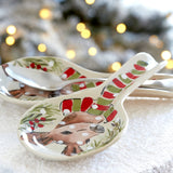 Elevate your kitchen game with our Deer Friends Spoon Rest! Crafted in Portugal from fine stoneware, this 9" x 4.5" H0.85" spoon rest is not only oven, microwave, freezer, and dishwasher safe, but also adds a touch of charm to your countertop. Hand wash for best results.