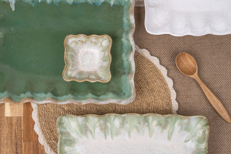 Pictured in Matcha Leaf and Matcha Latte (bottom) and beautifully paired with our Ice Cream Square Bowl for a cohesive, curated tabletop look.
