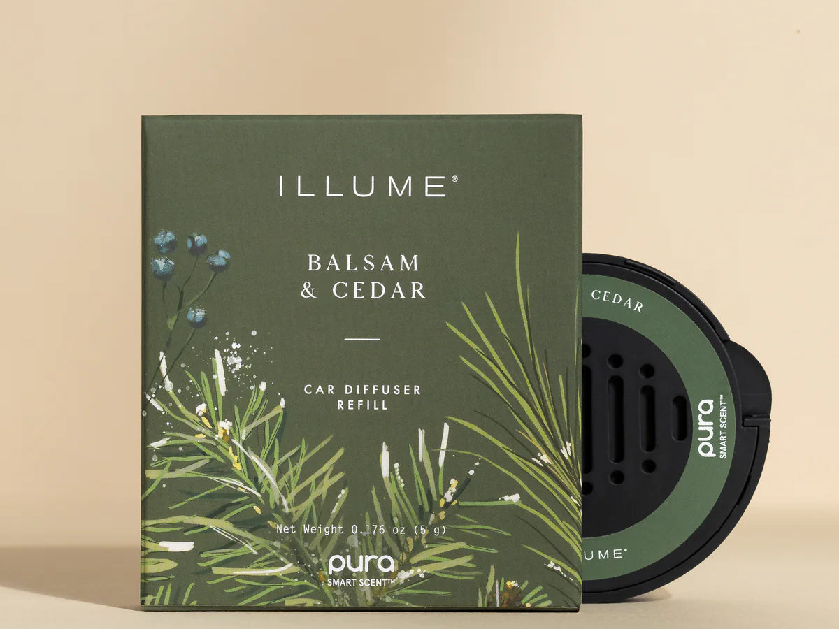 Turn your daily drive into a winter escape with the Illume Balsam & Cedar Car Pura Refill. This sophisticated fragrance combines cinnamon, eucalyptus, aromatic cedarwood, oak moss, and creamy balsam to evoke the feeling of traveling through a snow-covered pine forest.