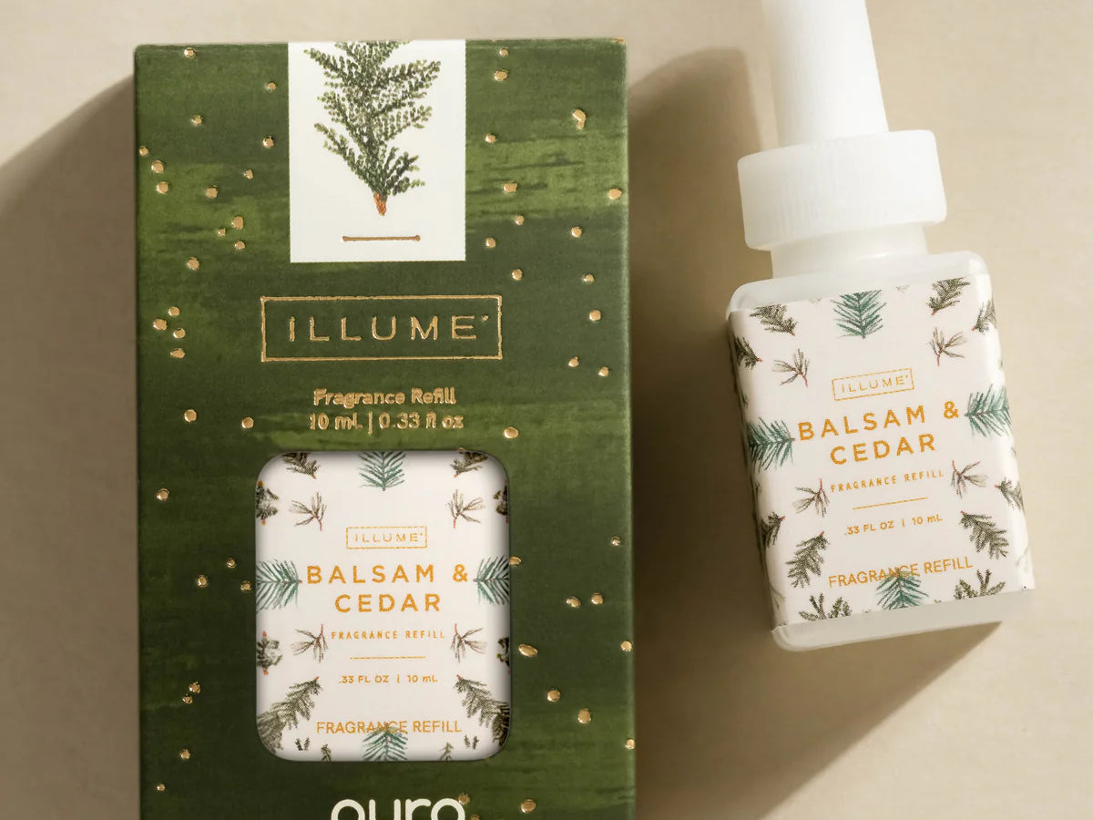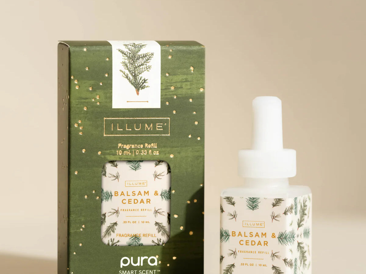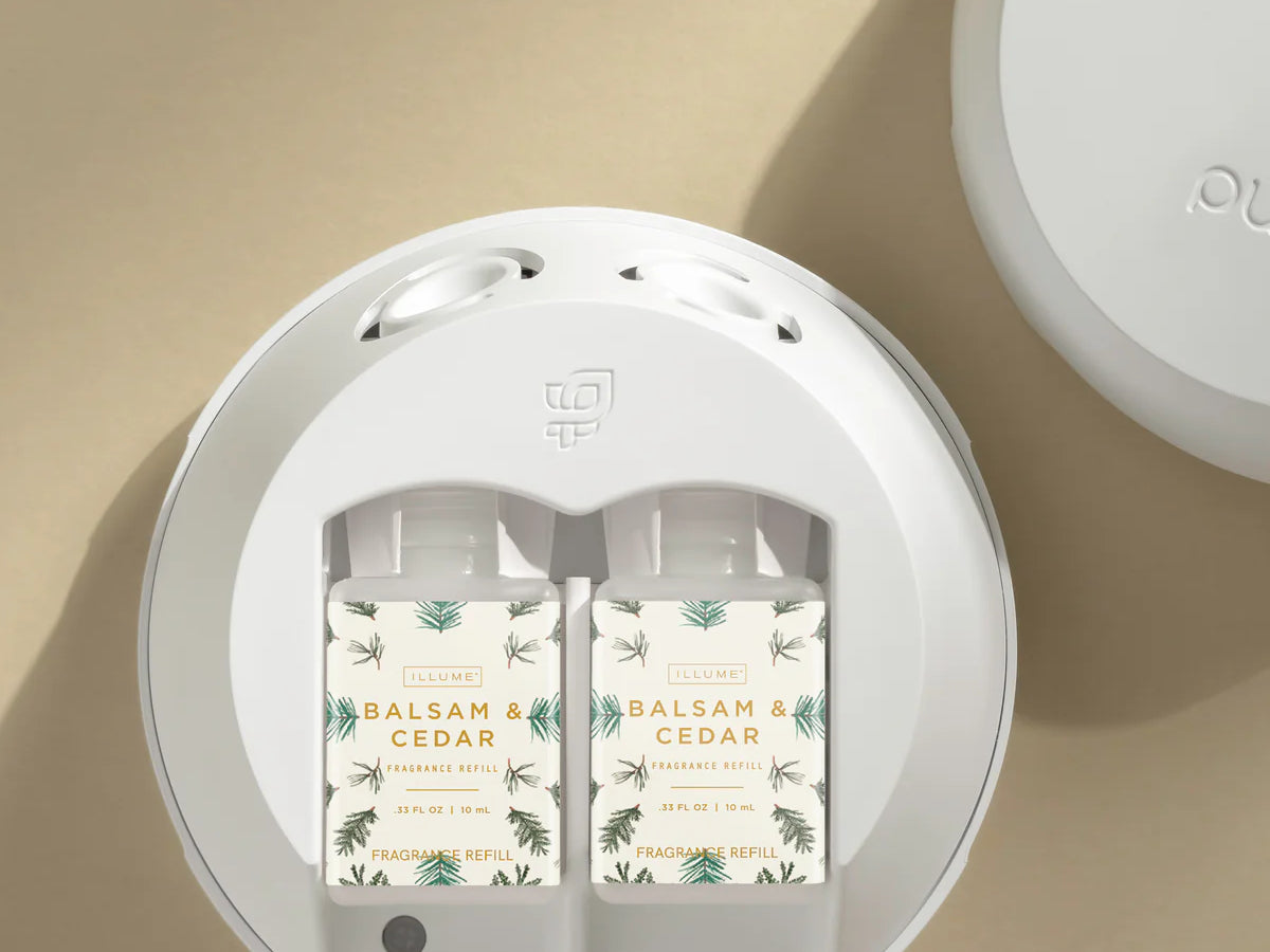Create a cozy, woodsy atmosphere this holiday season with the Illume Balsam Cedar Pura Refill. A festive blend of balsam, oak moss, aromatic cedarwood, cinnamon, and eucalyptus captures the essence of winter in every breath.