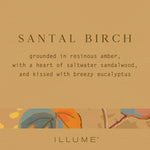 Create a calming, elevated atmosphere with the Illume Santal Birch Baltic Glass Candle. This sophisticated scented candle blends resinous amber, saltwater sandalwood, and breezy eucalyptus, delivering a fragrance that is both warm and refreshing—perfect for grounding your space while adding a light, airy feel.