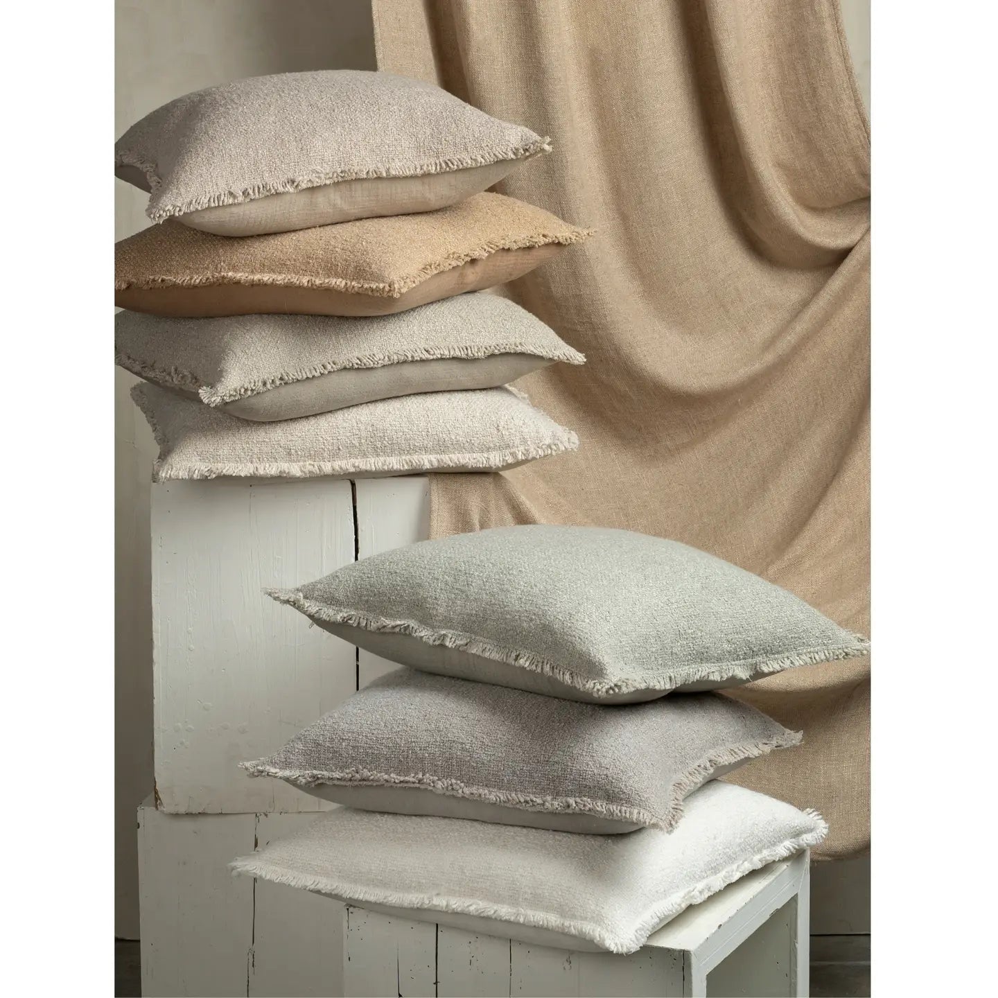 The versatile warm sand neutral tone makes it easy to style with patterned pillows, earthy palettes, or layered neutral decor. Finished with stylish frayed edge detailing, this pillow brings subtle character and artisanal charm to sofas, beds, and accent chairs.