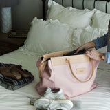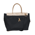 Thoughtful details like interior and exterior zippered pockets keep essentials organized, while the leather-trimmed base with silver feet adds durability and structure—perfect for travel near or far.