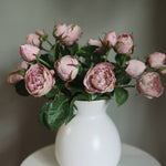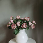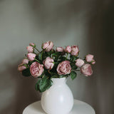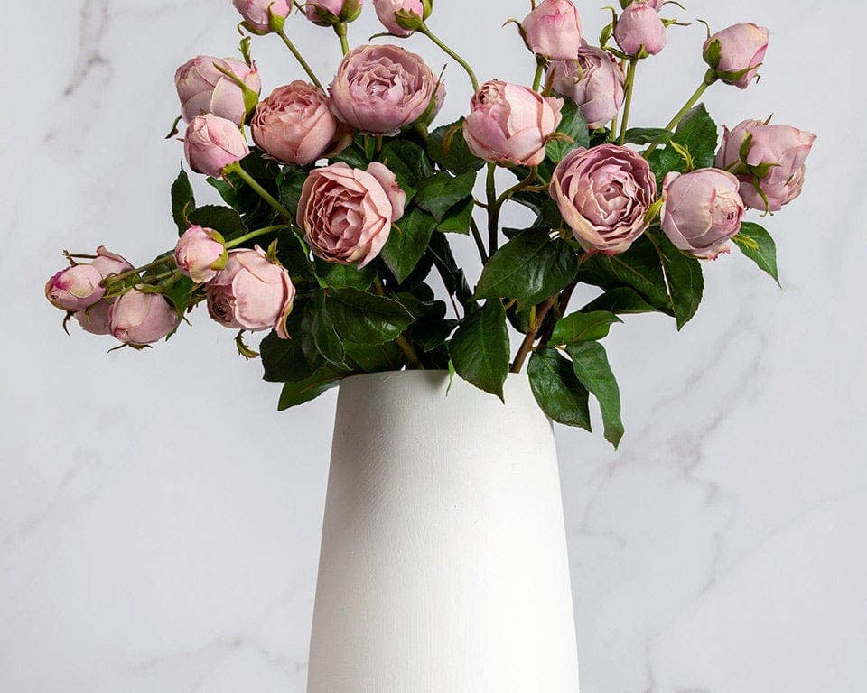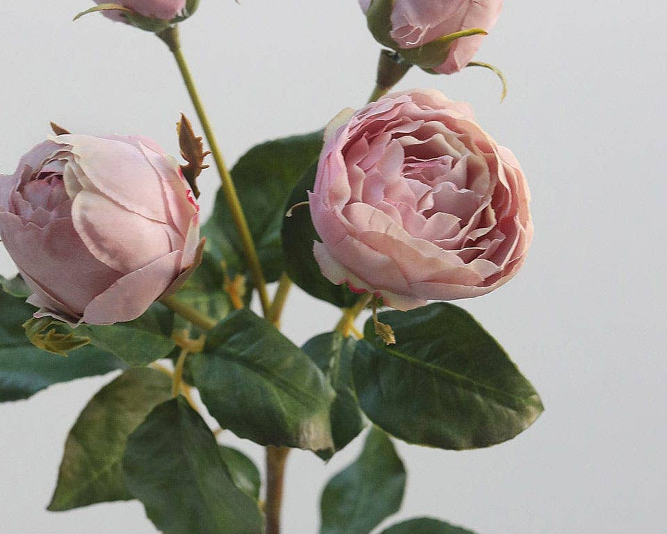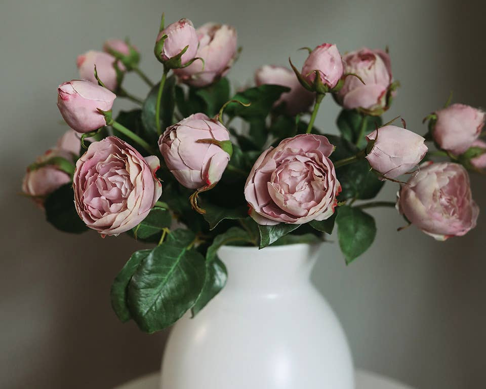 Each petal and leaf is thoughtfully detailed for a remarkably lifelike appearance, from the gentle curvature of the blooms to the natural texture of the foliage. The dusty mauve tone pairs effortlessly with both neutral palettes and richer florals, making this rose stem a versatile styling essential for classic, romantic, or modern arrangements.