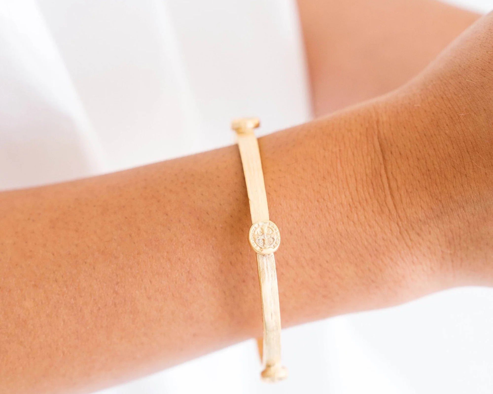 Elevate your everyday look with the Susan Shaw Coin Bangle, a timeless piece that exudes effortless elegance and Southern charm. Handcrafted in San Antonio, Texas, this bangle features a classic coin design plated in triple-plated 24K gold for a rich, radiant finish. With its 2.75-inch diameter and one-size-fits-most design, it’s the perfect accessory for stacking or wearing solo.