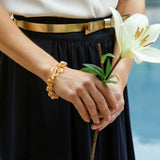 Keep your bracelet looking its best by cleaning with a dry, soft cloth. Avoid wearing while swimming or showering, and store in the provided pouch when not in use to maintain its shine and finish.