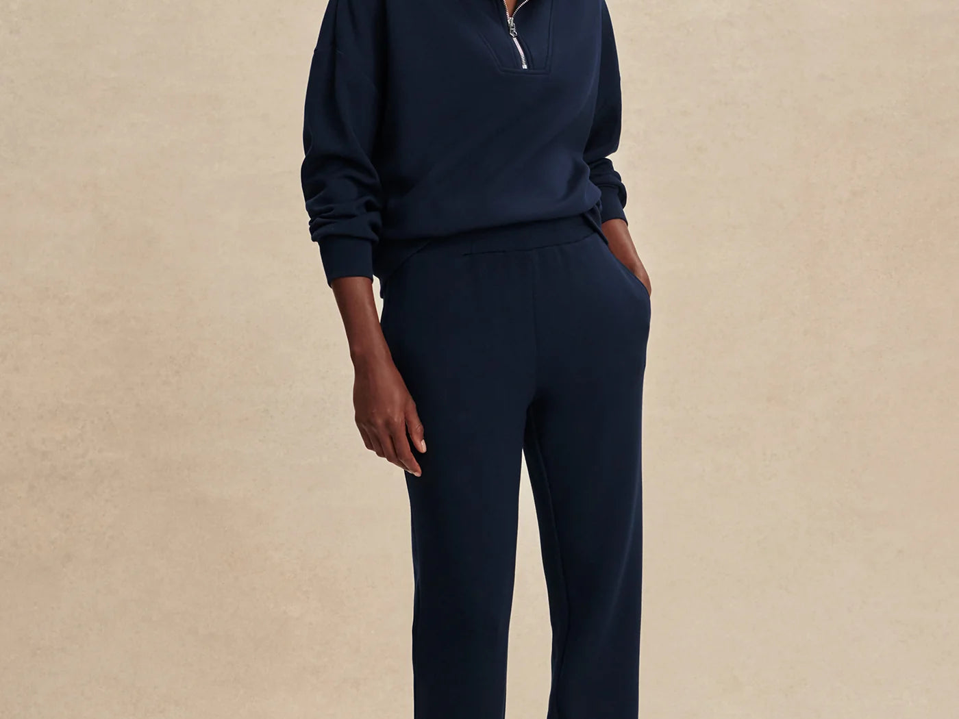 Featuring a sophisticated cuffed hem and practical side and back pockets, they effortlessly combine style and function. Perfectly paired with Varley’s signature DoubleSoft® sweaters, these pants are your go-to for versatile, elegant comfort whether at home or on the move.